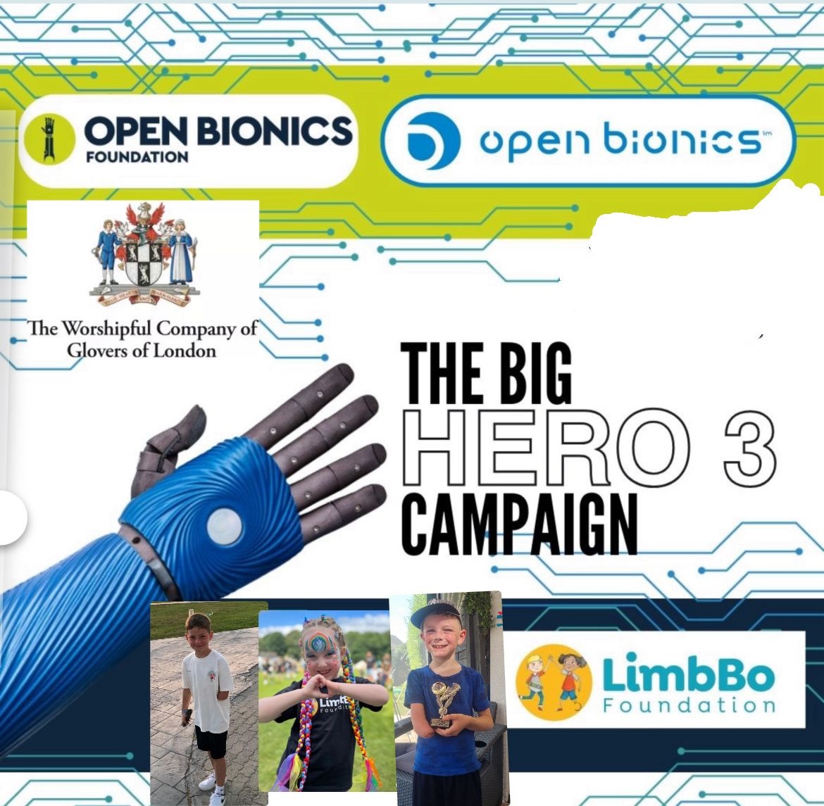 Generous contributions from The Open Bionics Foundation, The Worshipful Company of Glovers, and an anonymous donor have covered the cost of two Hero Arms, making Caleb’s family one of three selected to benefit from this program.