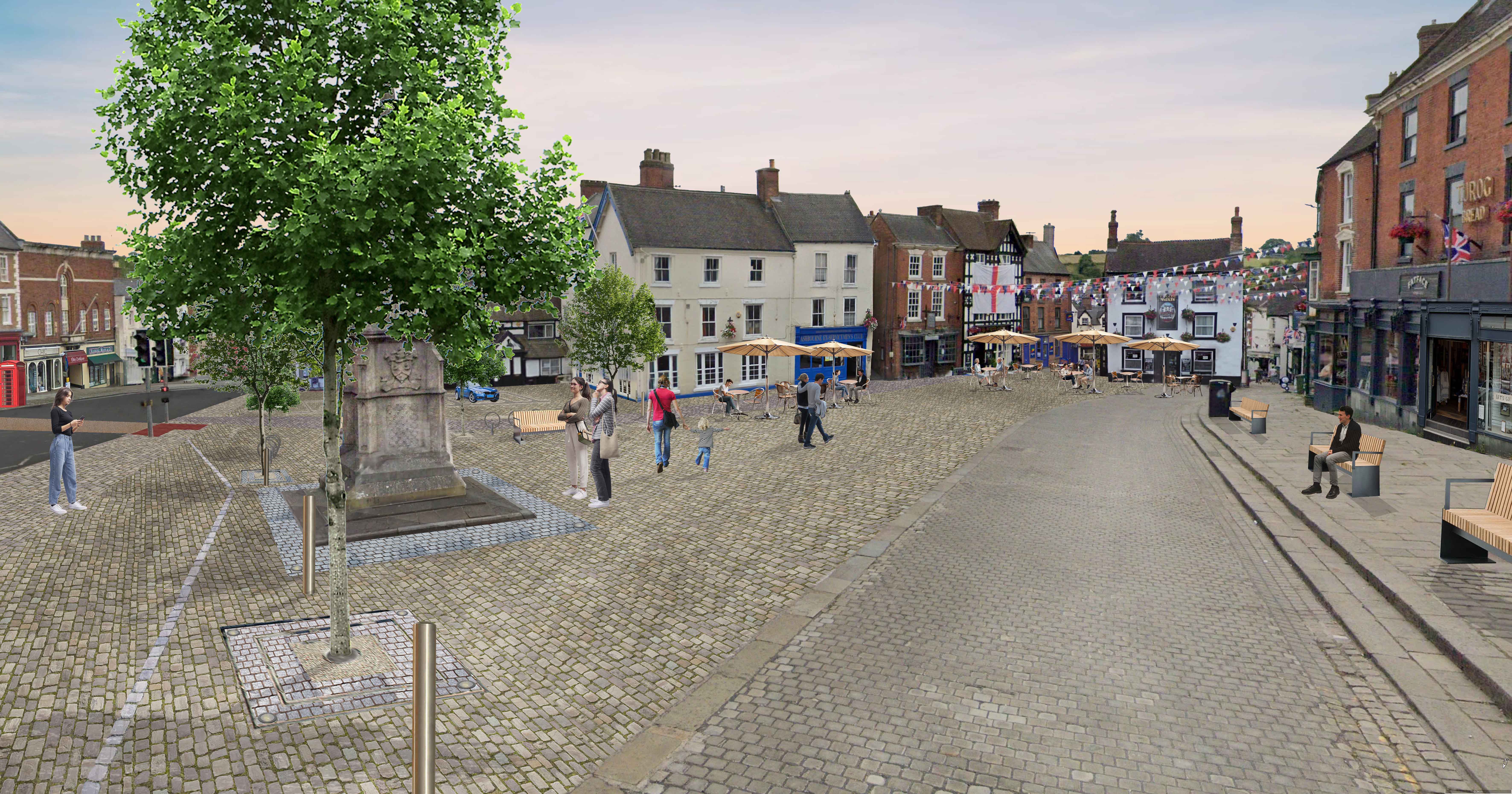 New entrance arrangements at the Market Place will slow vehicles and prioritise pedestrians after car parking is removed. The area will close to vehicles during events, but deliveries can still access it at other times. A local Ashbourne firm will supply the 'glide' bollard system, similar to Chesterfield's Market Place.