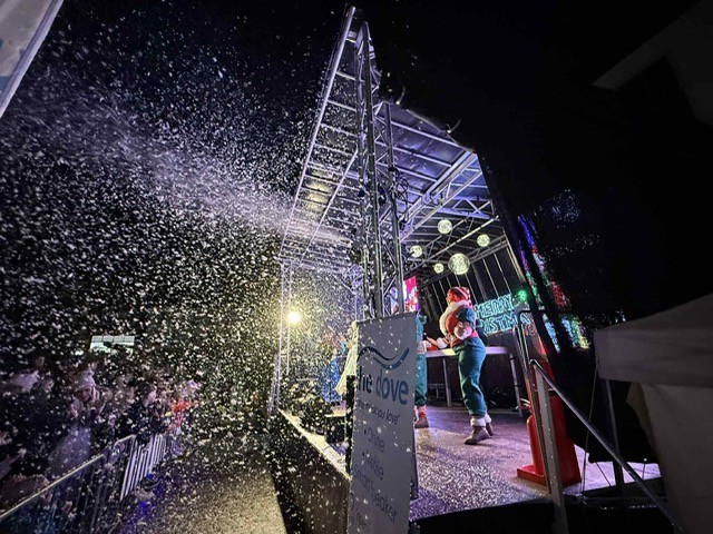 In November, we helped launch Ashbourne’s Festive Season from the newly refurbished Market Place for the Christmas Lights Switch-On. With a bigger stage from LG Stage Hire, the afternoon was filled with entertainment that delighted our younger listeners, alongside street performers and big-screen characters, all soundtracked by DOVE’s classic Christmas playlist.
