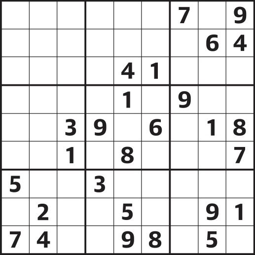Fill the grid so that every row, every column and every 3x3 box contains the numbers 1 to 9.