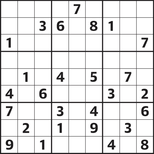Fill the grid so that every row, every column and every 3x3 box contains the numbers 1 to 9.
