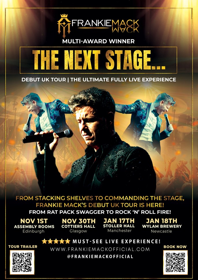 Win a pair of tickets to see Frankie Mack @ The Stroller Hall in Manchester on Saturday 17th January 2026, as the Scottish singer and showman Frankie Mack brings his celebrated live experience The Next Stage Tour to the City.
